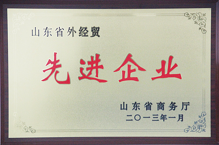 2012年12月30日、山東省商務会議は済南で開かれた。大会は全省優良対外流通企業及び対外貿易企業に対する表彰を行った。当社は魯商務人字[2013]25号の「2012年度山東省対外流通及び対外貿易先進企業の表彰に関する通知」により、「山東省対外貿易先進企業」に表彰された。