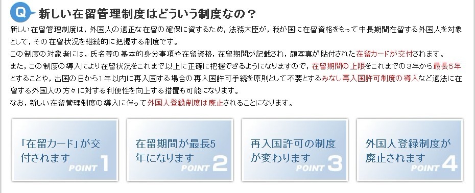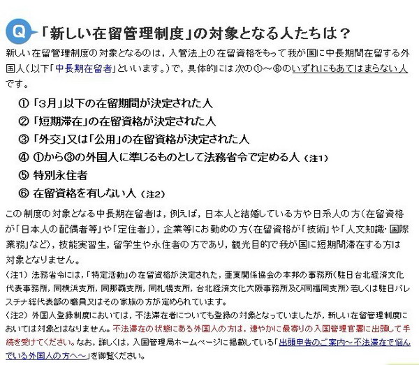 2012年7月9日日本开始实行新的入国、再留管理制度