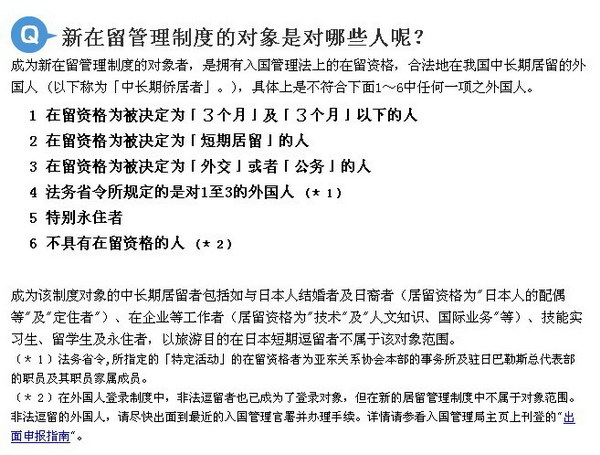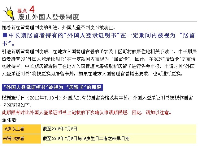自2012年7月9日开始,日本开始实施新的在留管理制度