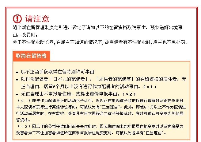 摘自 日本法务省入国管理局网站